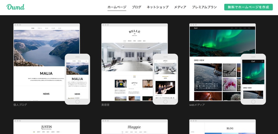 「ホームページ作成」に焦点をあてて開発されているので、企業サイトのようなオシャレなデザインのテンプレートがそろっています。